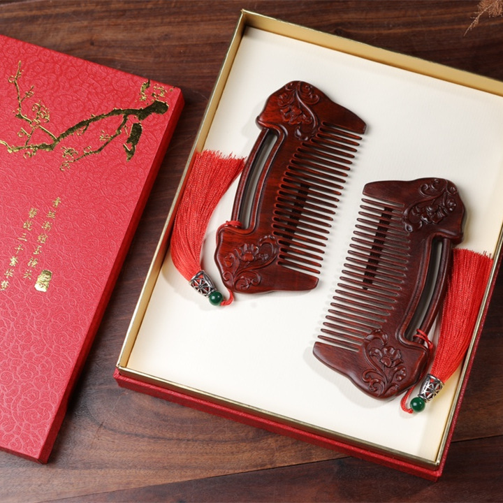 心相印心連心紅木紫檀木櫛子美容櫛礼箱セットプレゼント結婚祝いプレゼント卸売り