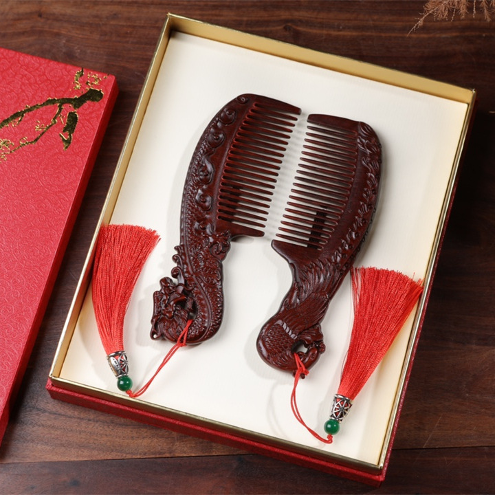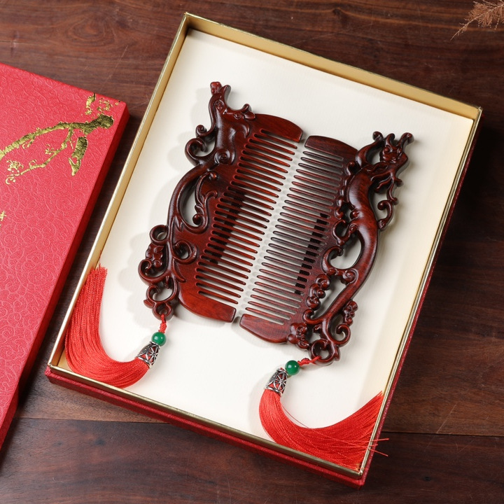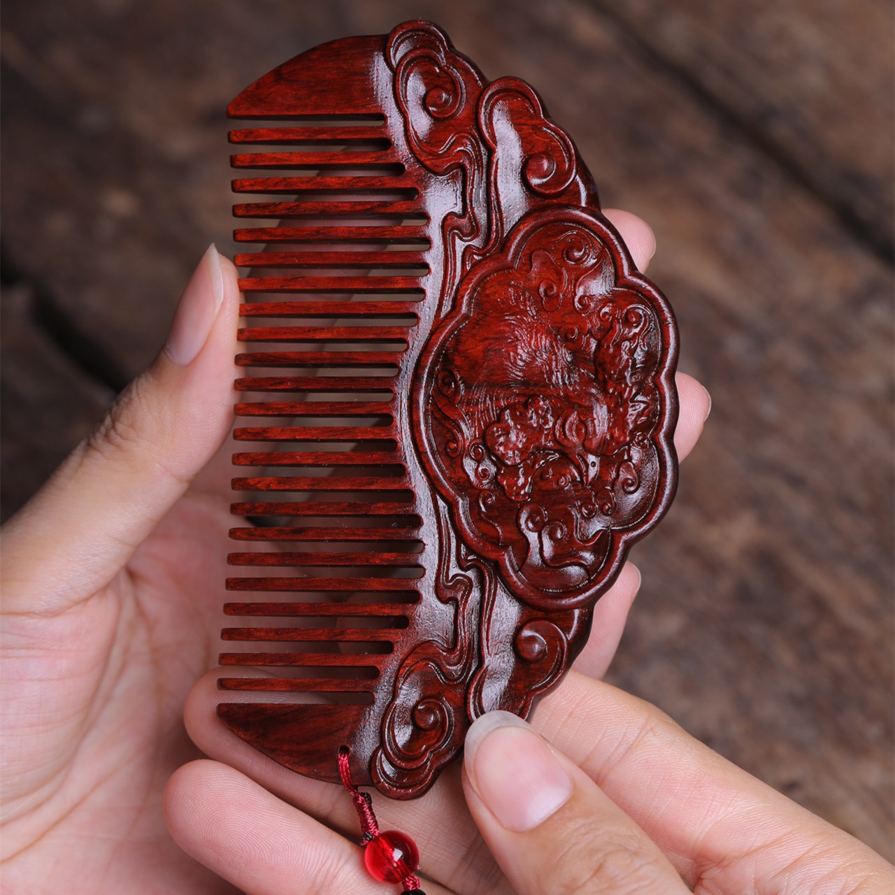 紫檀の赤い木の櫛の竜鳳と鳳凰の祥龍の贈り物の美容の櫛の透かし彫りの彫刻の結婚祝いのスーツの卸売り