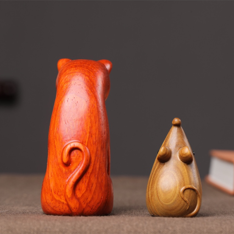 赤い花梨の彫刻猫の緑檀のネズミの木の置物のおもちゃの書斎の装飾品の生肖の贈り物の置物のアイデア