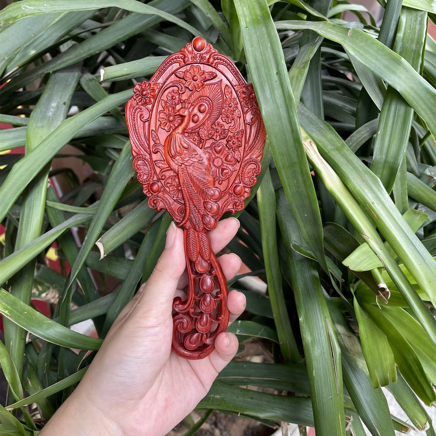 紫檀木レトロ孔雀鏡長柄透かし彫り彫刻花手持ち鏡観光スポット化粧鏡プレゼント卸売り