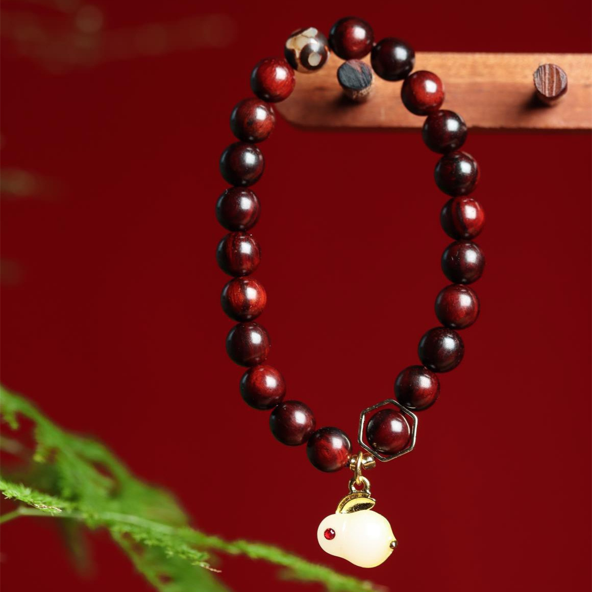 小葉紫檀木質生肖ブレスレット女紅木十二生肖手串男バレンタインデー誕生日プレゼント