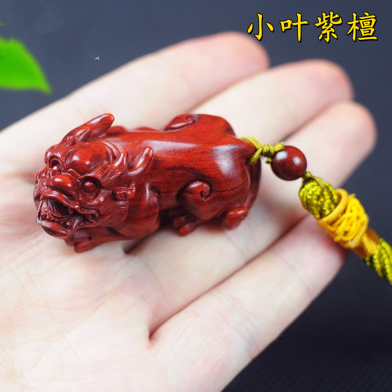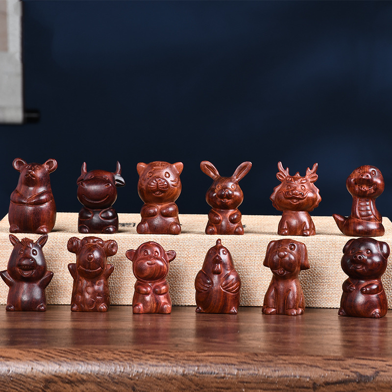 小葉紫檀紅木彫刻十二生肖置物実木カップル車のキーホルダーペンダント