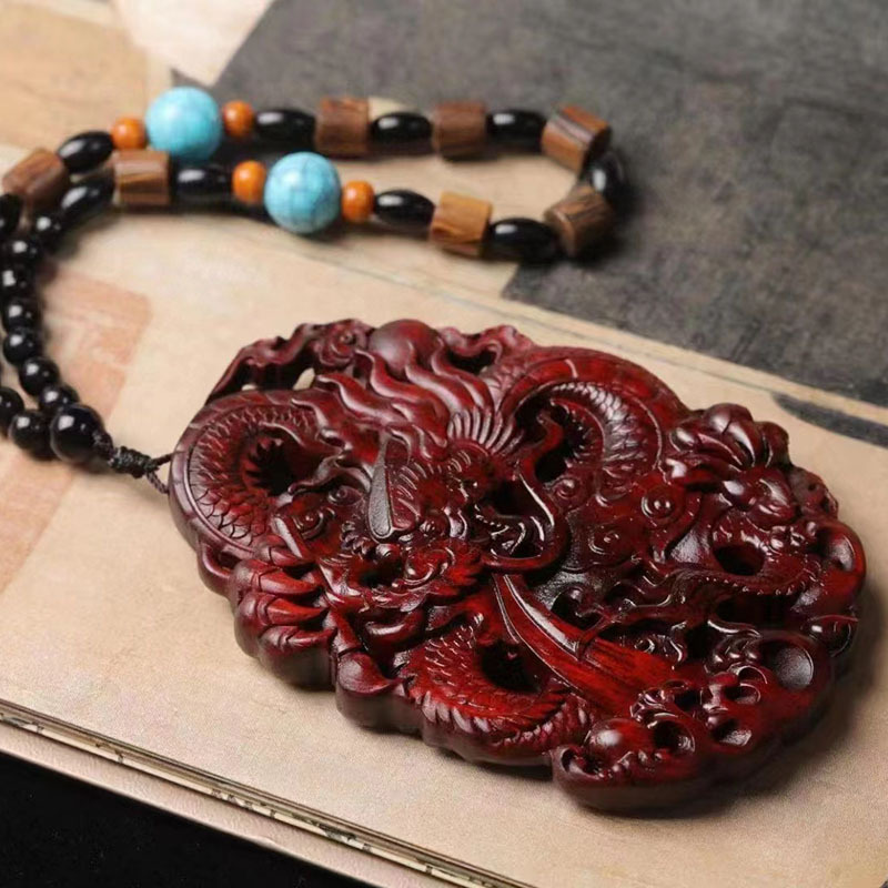 天然小葉紫檀大龍牌生肖彫刻ペンダントネックレスハンドル部品