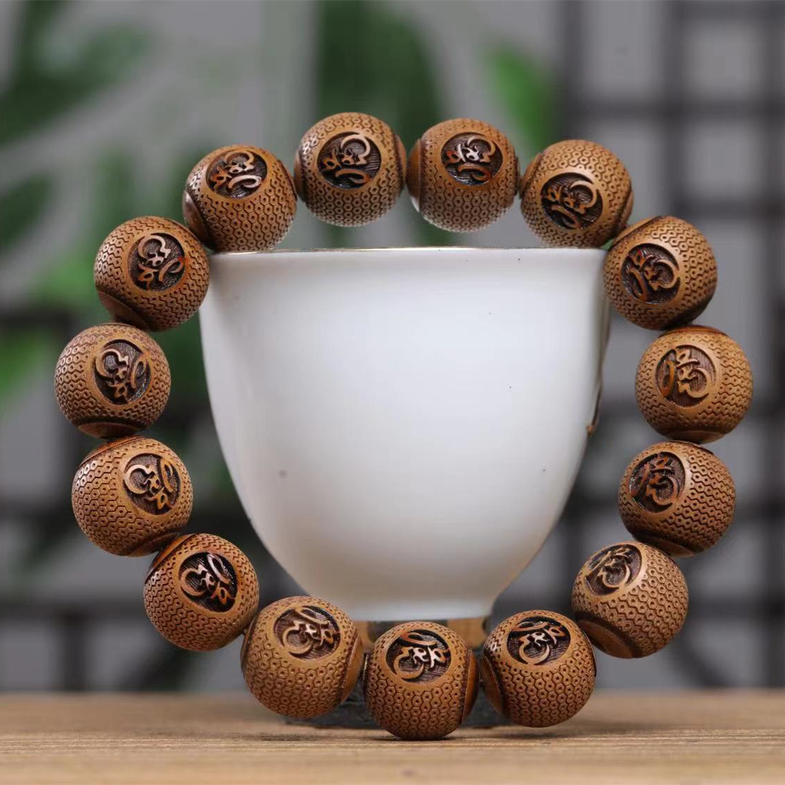 六道木彫刻仏珠生肖虎実木創意手串ブレスレット車掛虎虎生威自動車シフト装飾