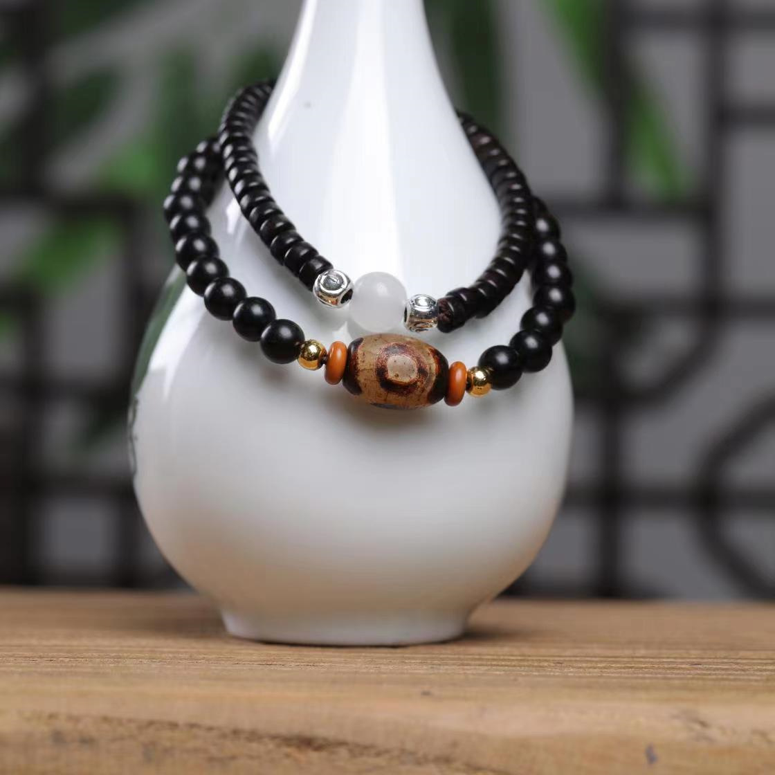 黒檀の木の手の数珠の双つづりのアイデアのブレスレットの数珠の仏珠の手は男女の双輪の復古風の装飾品を飾って簡単です。