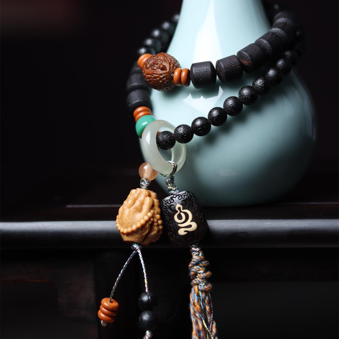 インドネシア紫檀木彫刻仏珠一念の間に仏魔創意数珠ペンダントは車を持ってシフトの装飾品を掛けます。