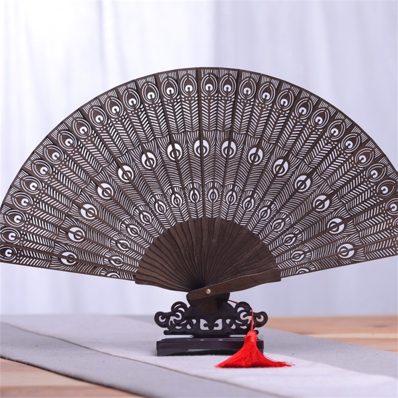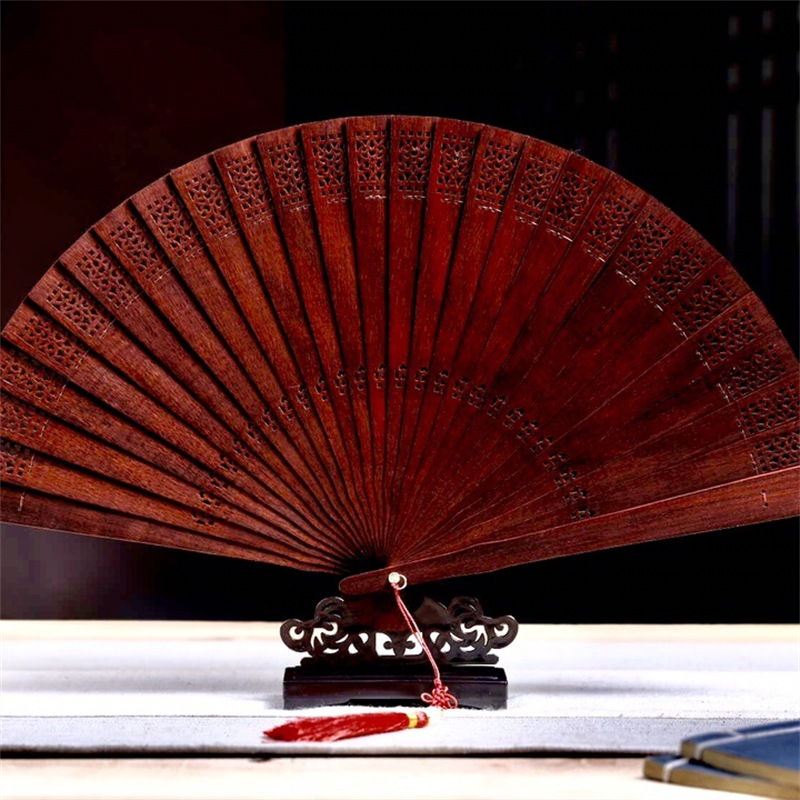 ザンビア紫檀蘇州蘇扇精彫伝統工芸折りたたみ木扇観光スポット文創卸売り