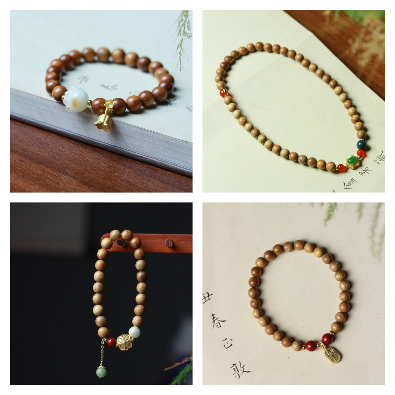 澳州檀香順紋多輪手串ニャンコ爪金小清新文芸気質男女金ブレスレットメーカー卸売り