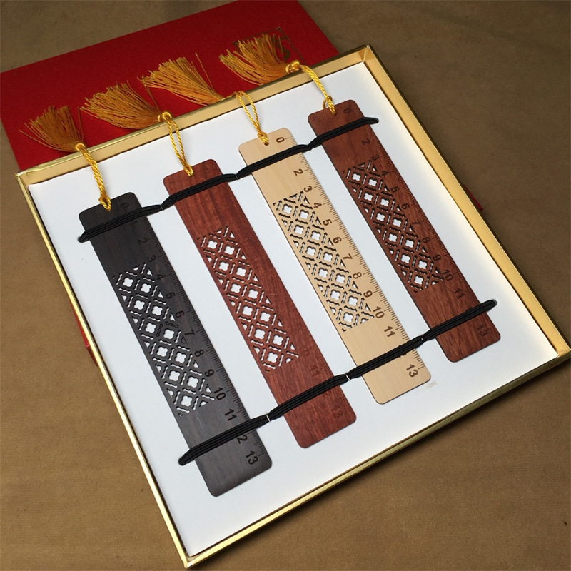黒檀血檀紅木黄楊木中国風復古しおり太陽樹ブックマーク会社プレゼント青花磁器流蘇