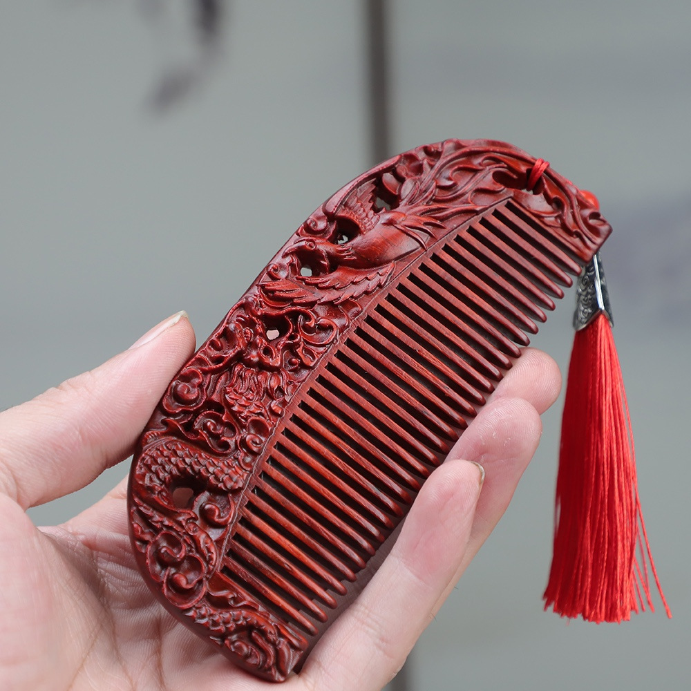 サイ角紫檀木両面彫刻古風木櫛美髪飾り櫛結婚祝いの祝日に彼女にプレゼントする櫛