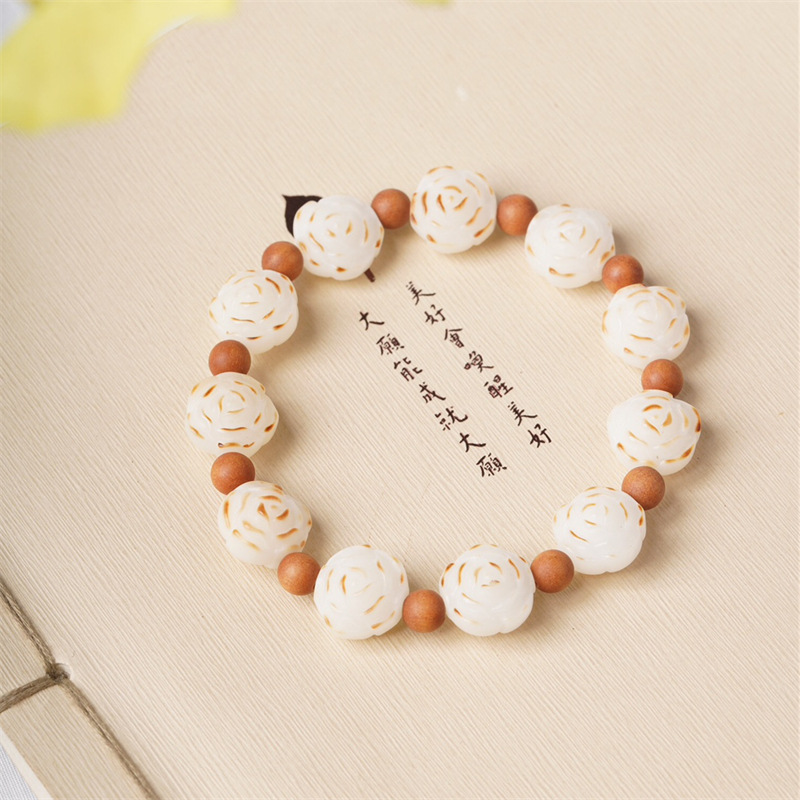 白玉菩提山茶花彫刻珠手串規格1.4男女文游単輪数珠アクセサリーメーカー卸売り