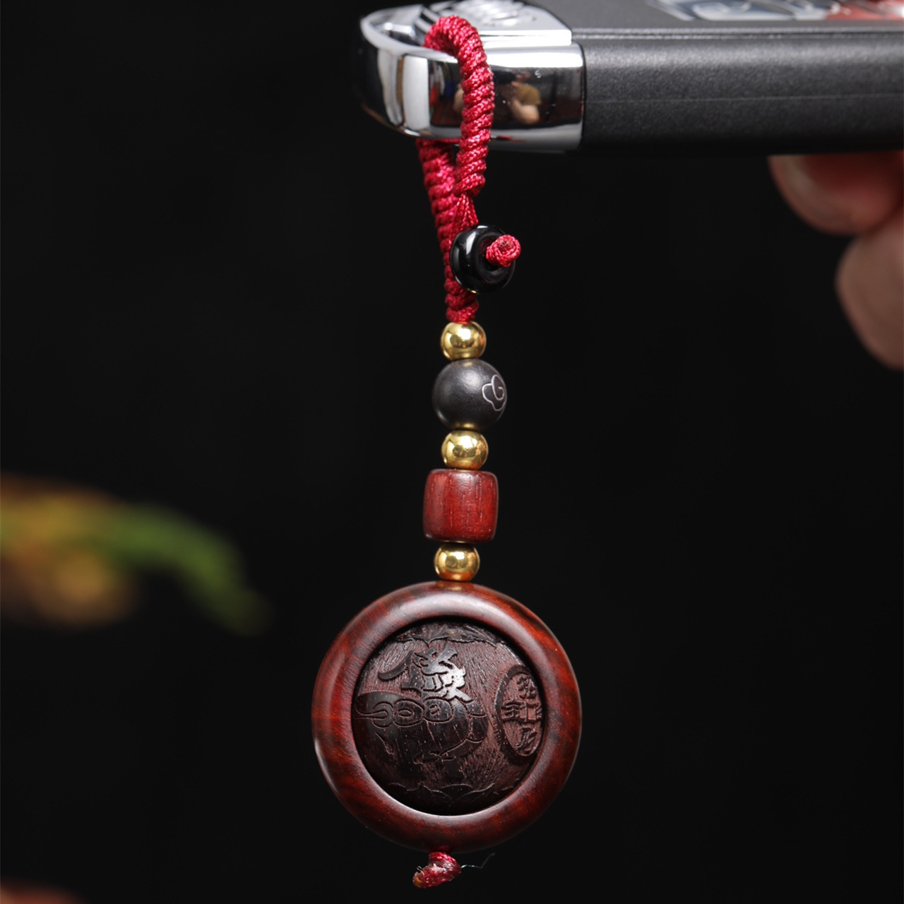 オリジナルの小葉紫檀の手串は太歳のお守りの手札のチェーンロープを掛けます。