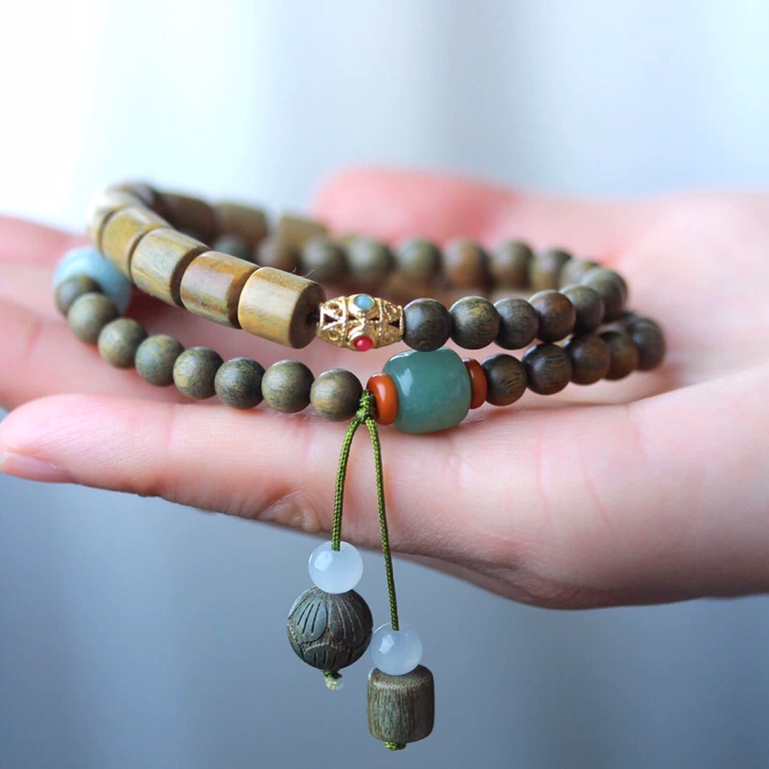 レトロ緑檀手串女森系学生ブレスレットカップル仏珠手串檀香手串中国風デザイン仏珠