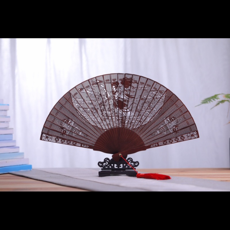 透かし彫り金糸楠陰沈木烏木蘇扇中国ファン沈香木ネット赤舞踏扇古風折り畳み扇子