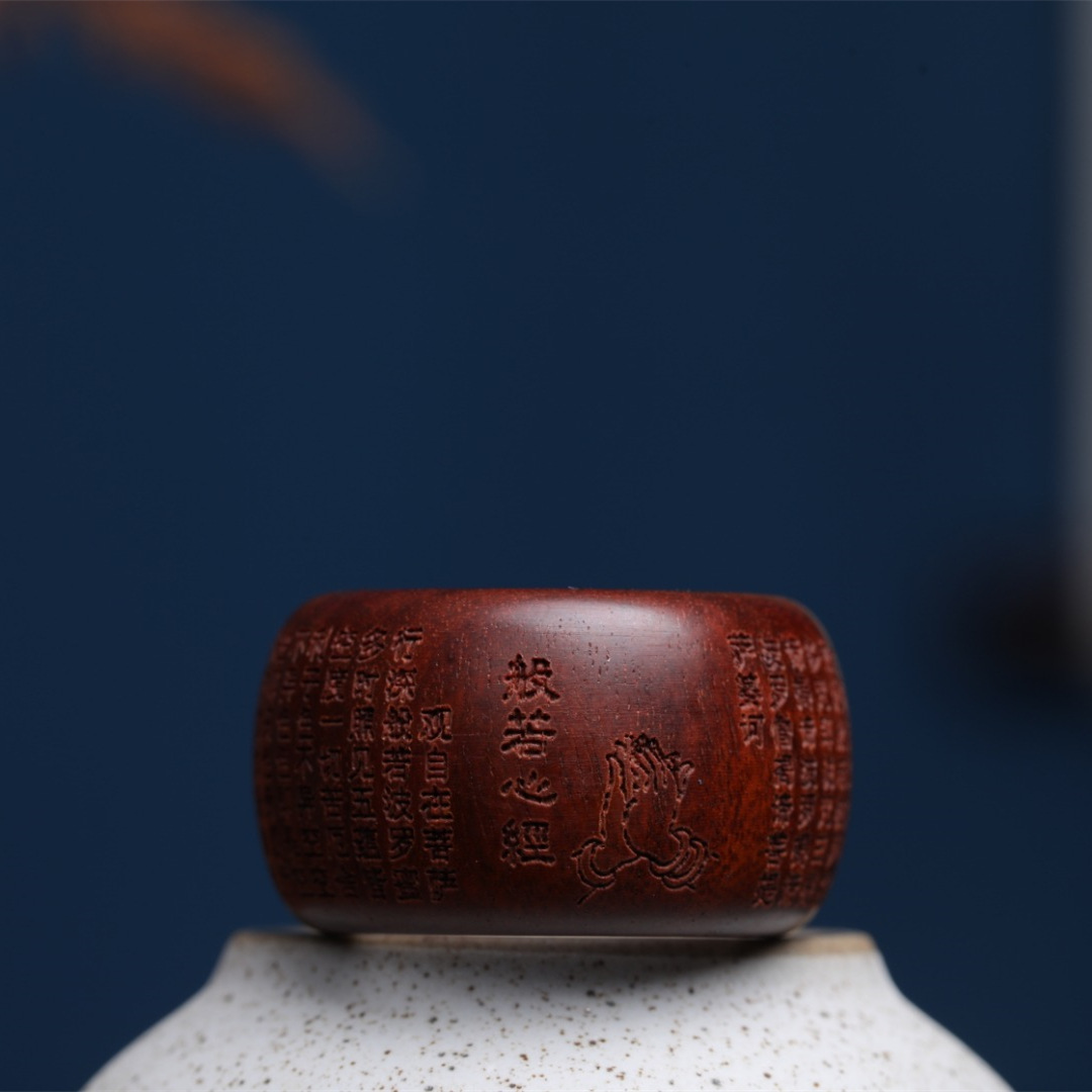 紫檀木の指輪は般若心を彫刻して男性の親指を引いてシンプルな国風の復古の指輪の禅意の指輪を指します。
