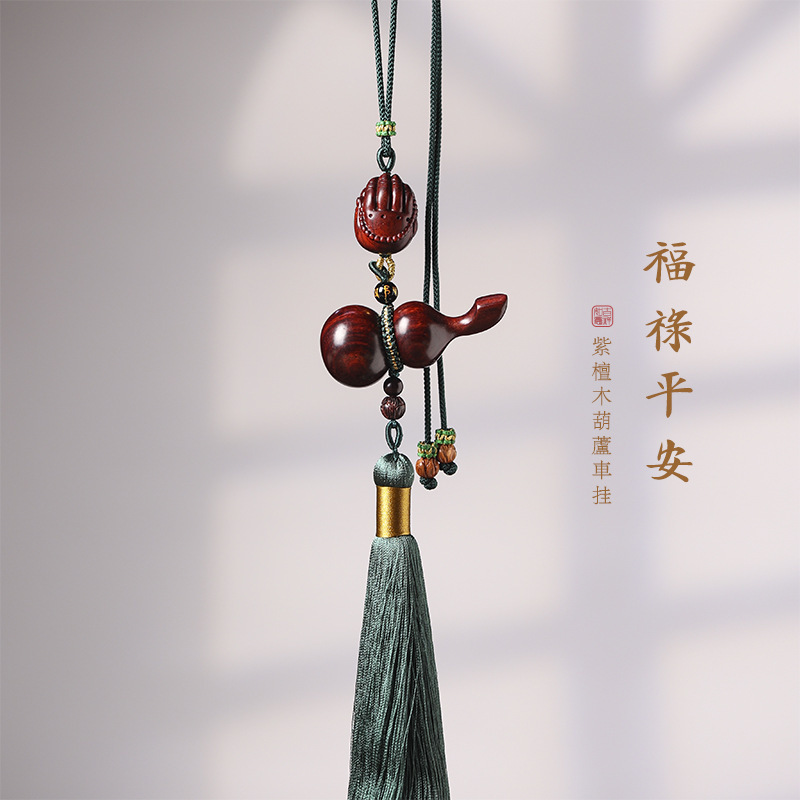 天然檀木diy福禄瓢箪護路平安高級文芸古風流蘇車掛内装創意車掛