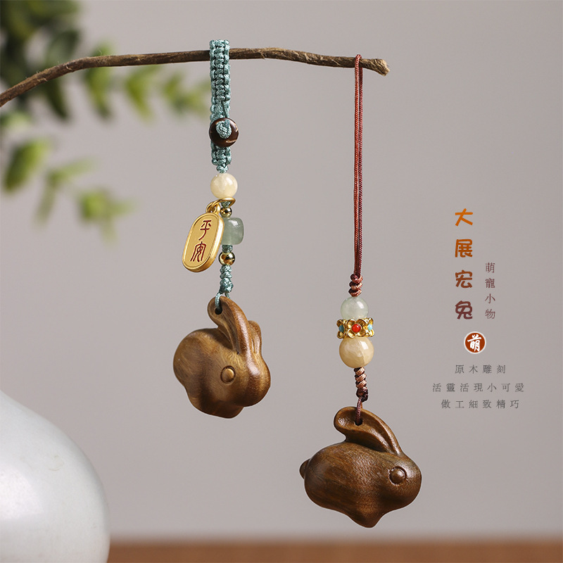 爛漫癒しシリーズ緑檀木diy生肖小兎携帯ストラップ文芸レトロ携帯ストラップ