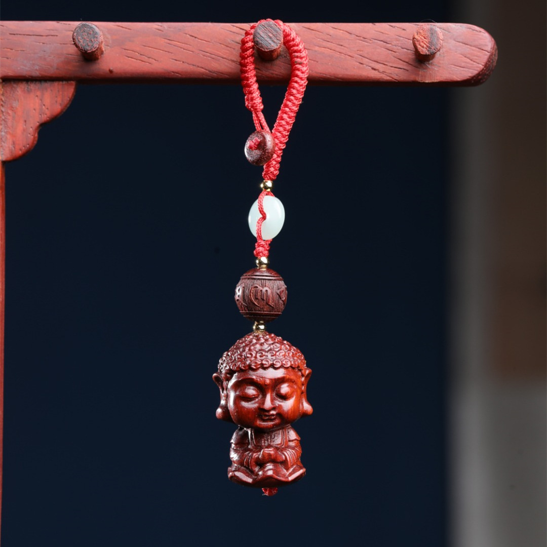 紫檀木彫り阿弥陀仏自動車のキーホルダー