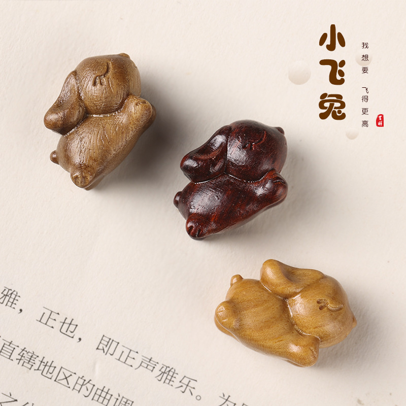 かわいい木製diy玉兎福は紫檀木彫りのアイデア携帯電話/キーホルダーのアクセサリーでいっぱいです