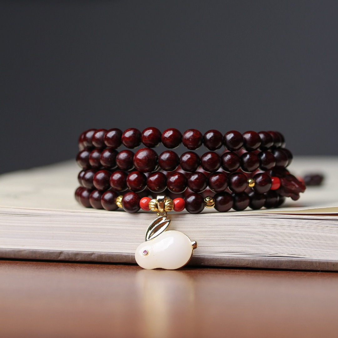 天然小葉紫檀108個とマレー玉兎仏珠男女カップル民族風の小衆手串