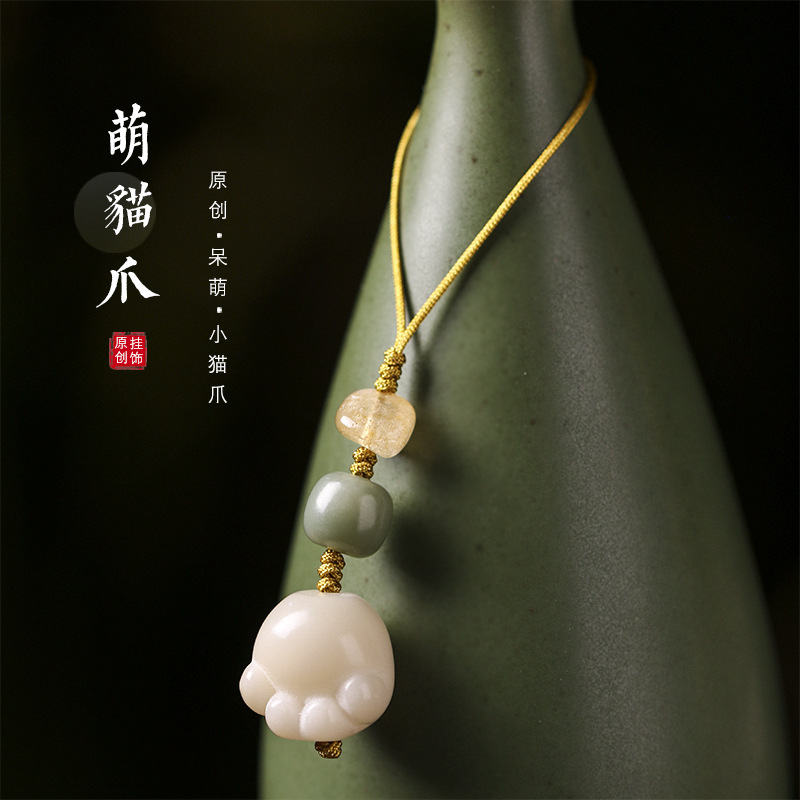萌え系風化菩提猫爪手作り携帯チェーン高級カップルペンダント招財自動車キーホルダーアクセサリー