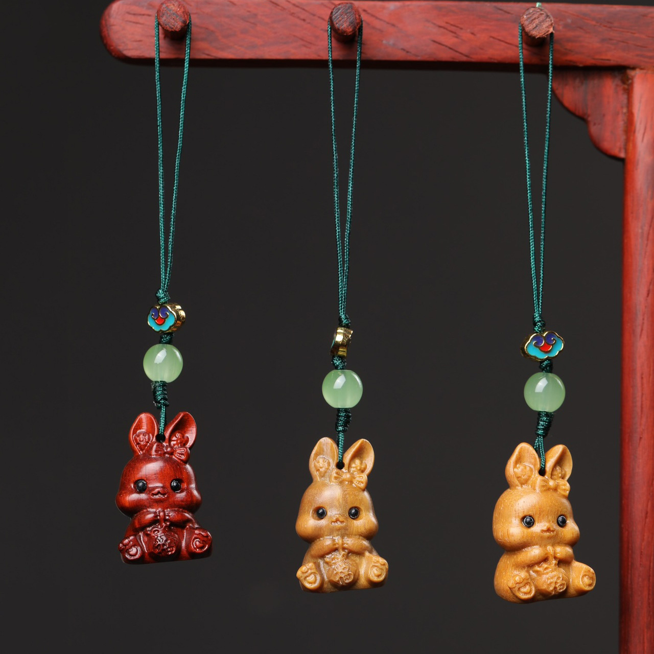 古風緑檀木彫り提福うさぎの携帯チェーンが可愛いです。