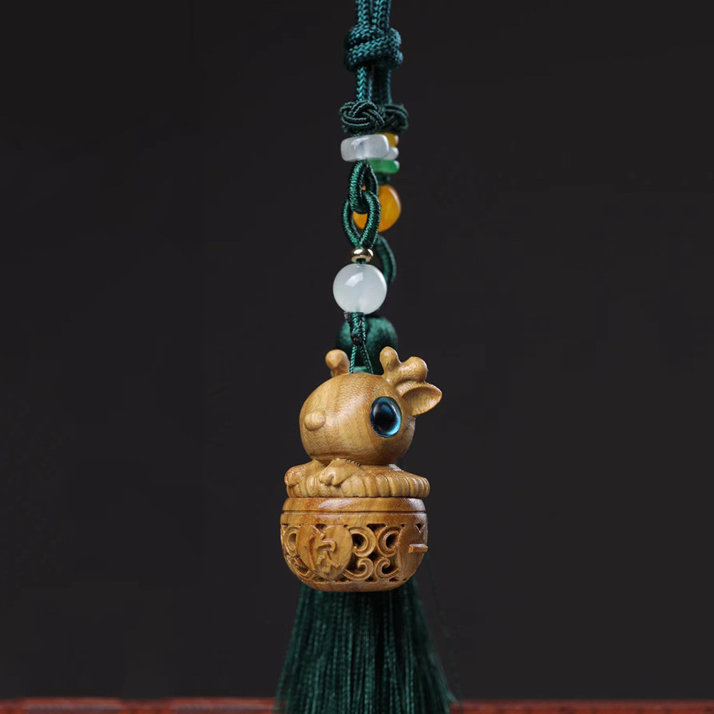 震え音の同タイプの緑檀萌萌鹿香嚢ペンダント一鹿あなたがいます。