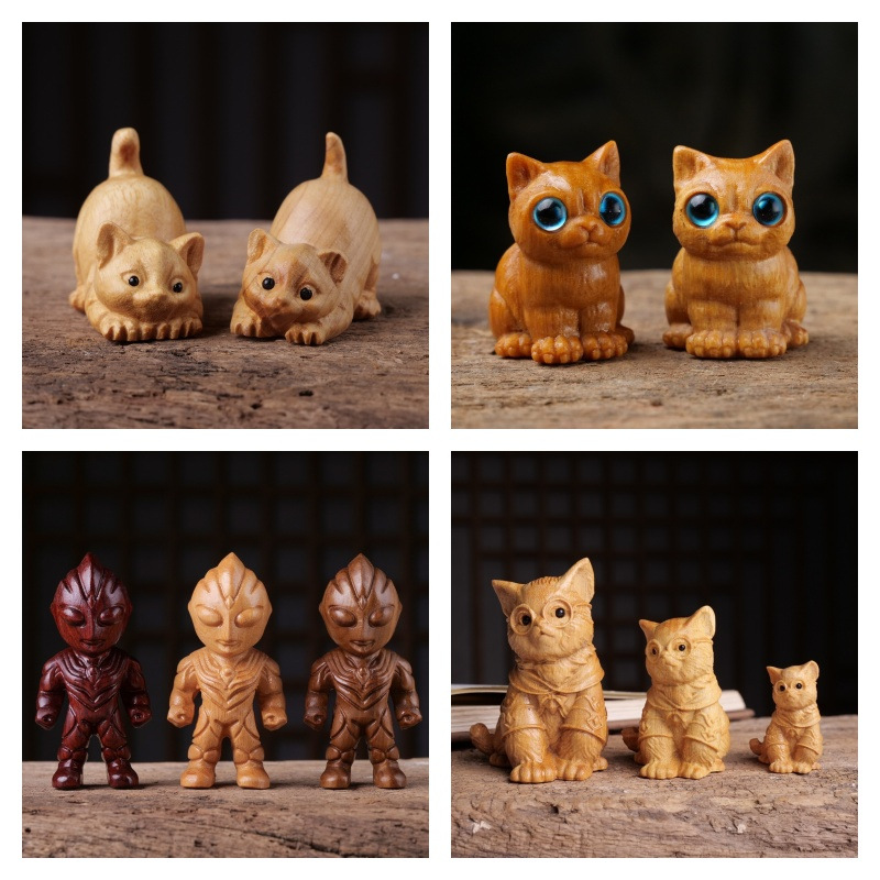 崖柏の木彫りのハンドルの漫画の生肖のかわいいデスクトップの小さい置物の観光地区はよく売れています。