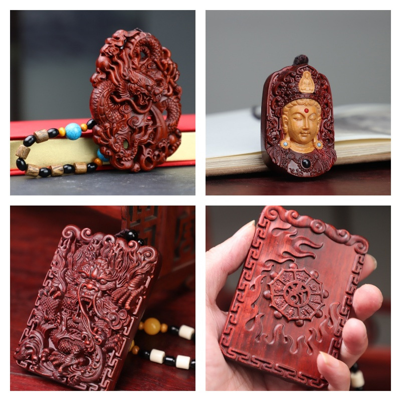 インドの小葉紫檀仏牌ペンダント八大守護神男性符無事札本命仏ペンダント