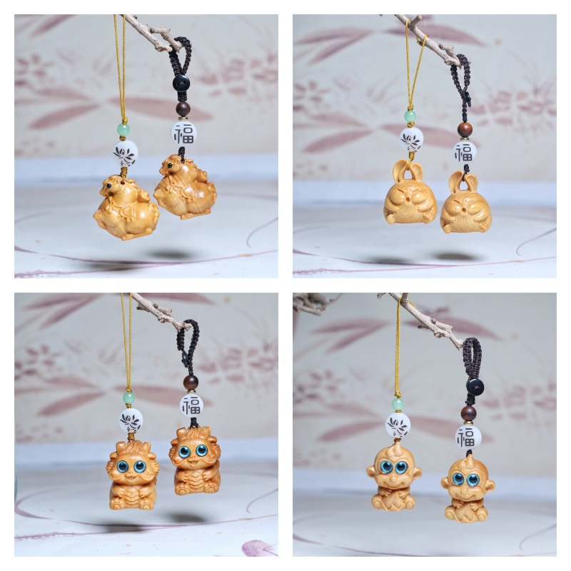 崖柏の木の彫刻の十二生肖の馬の携帯電話はかわいい動物のデスクトップの置物の工芸品のキーホルダーを飾ります。