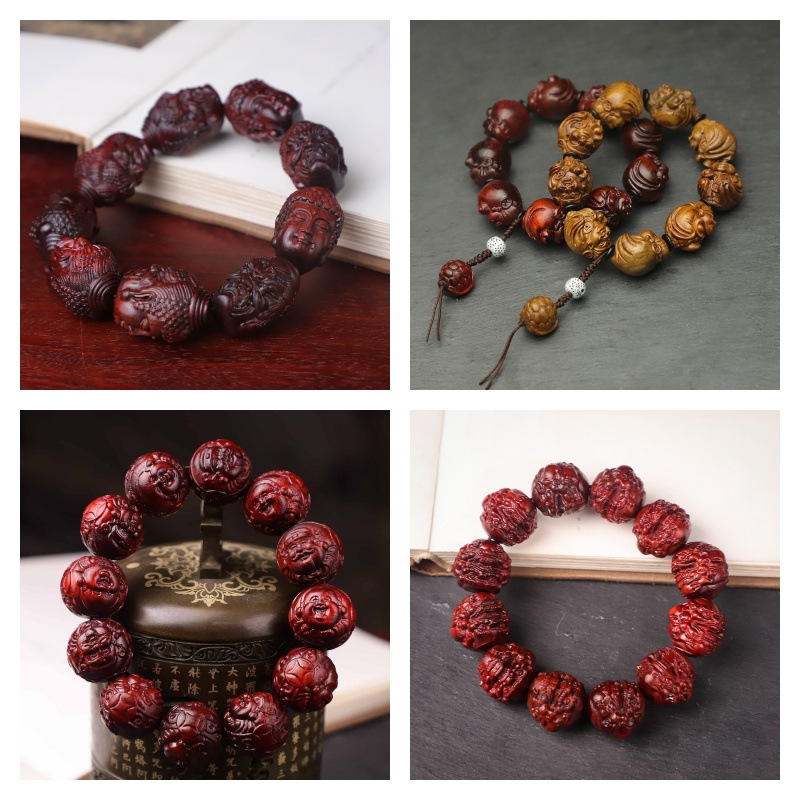 紫檀木彫刻十八羅漢手串サイ角紫檀関公高密度ブレスレット
