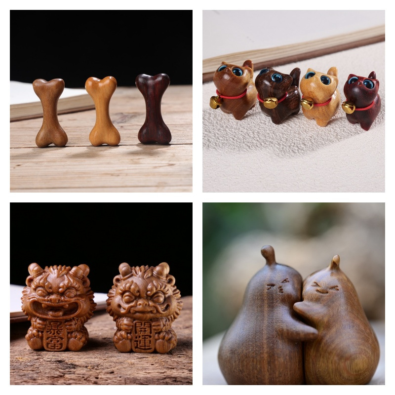 緑檀木の小さい骨の文はハンドルの件の木製のマッサージを遊んで、趣味の木彫りの工芸品のかわいいアイデアの装飾品を掻きます。