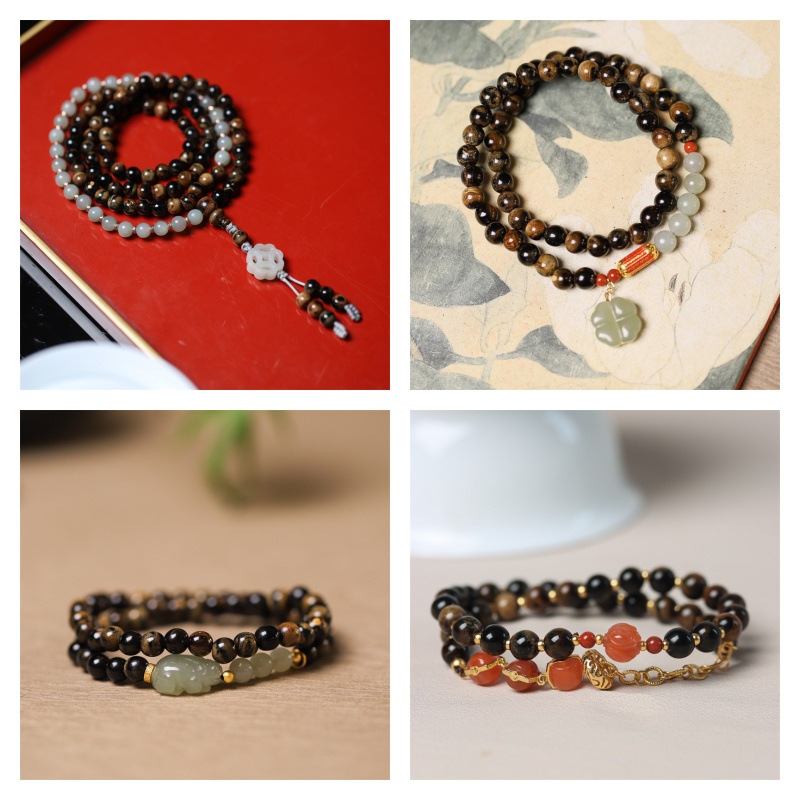 カリマンダン黒油沈香手串と黒柿木五条は輸送チェーンの文で仏珠ブレスレットの卸売りをします。