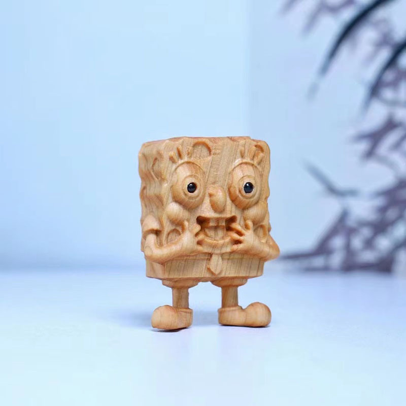 崖柏の木の彫刻のスポンジの赤ちゃんは大星のタコの兄のカニの社長の木製の小さい部品のかわいい漫画のハンドルの卸売りを派遣します。
