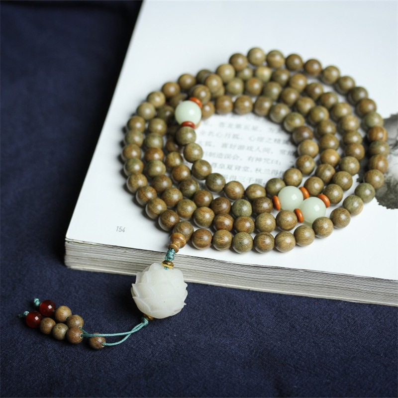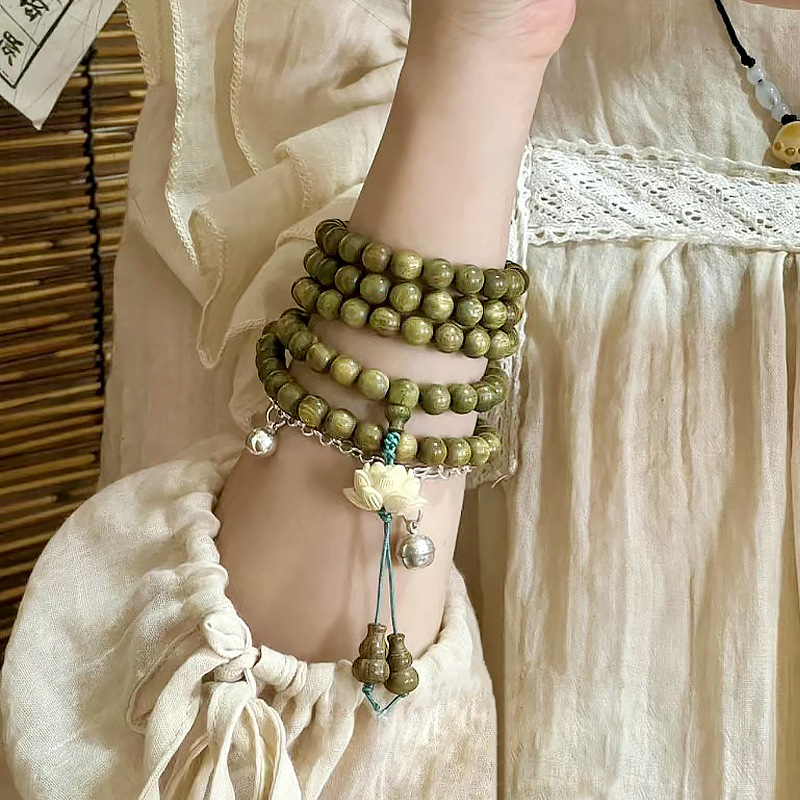 静心の緑檀木の手串の古い材料の多い回の108個の女性の金の皿は数珠の檀香の仏珠の木の文を遊んでブレスレットを遊びます。