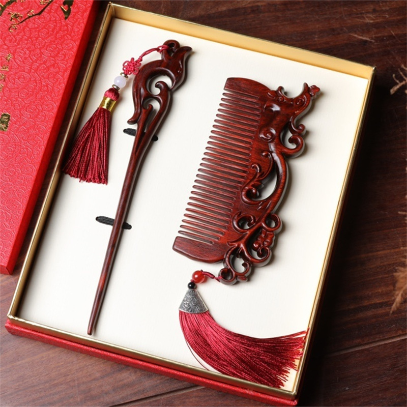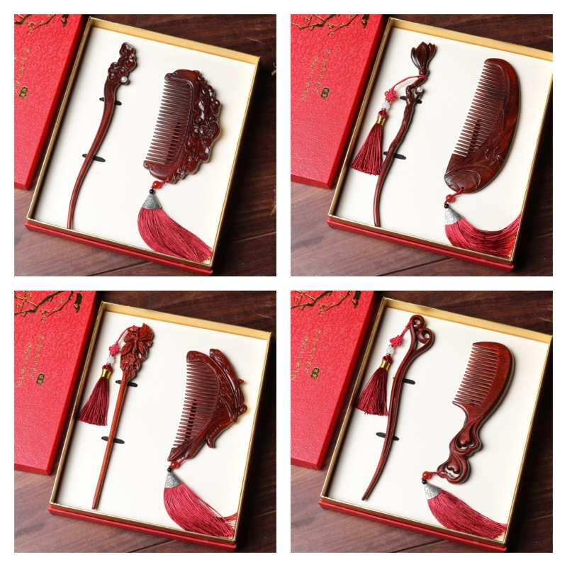 小葉紫檀ヘアピン木櫛セット結婚祝い中秋節春節親友プレゼント母の日高級プレゼント