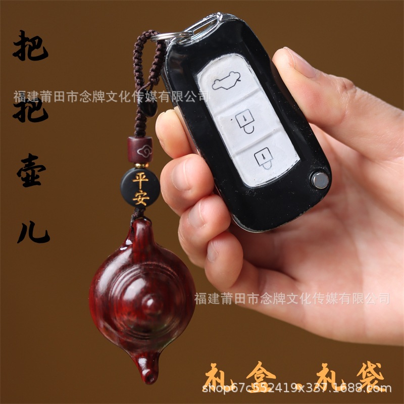 紫檀木の手で遊んでいます。壺のキーホルダーを小さいティーポットに掛けます。