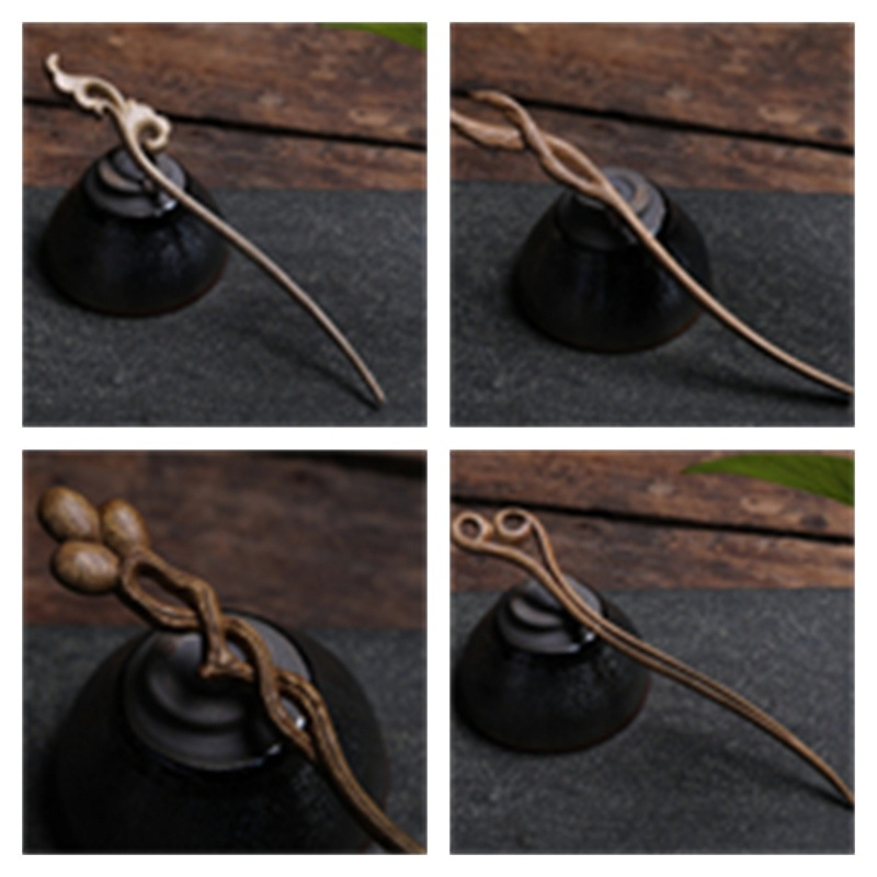 中国風金糸楠木ヘアピン復古風古着漢服頭飾り小葉楠木質盤発国風ヘアピン