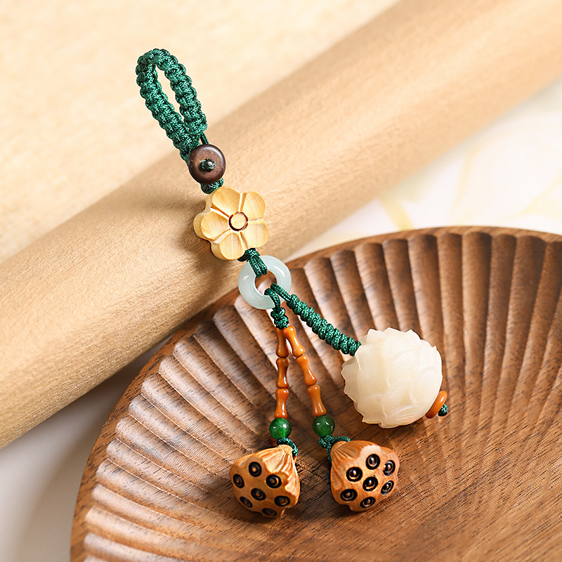 菩提樹脂の蓮の車のキーホルダーをまねて桃木蓮蓬を掛けます。
