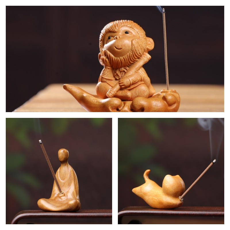 バービー檀悟空香挿し檀香木置物かわいい茶寵置物にらめっこ挿し香道線香托