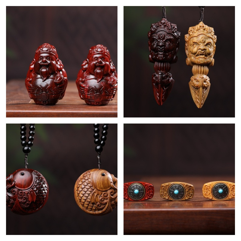 紫檀の赤い木の彫刻の生肖の牛はぐるぐる回って乾いて坤の手の部品の車のペンダントの赤い木の工芸品の文は飾り物を遊びます。