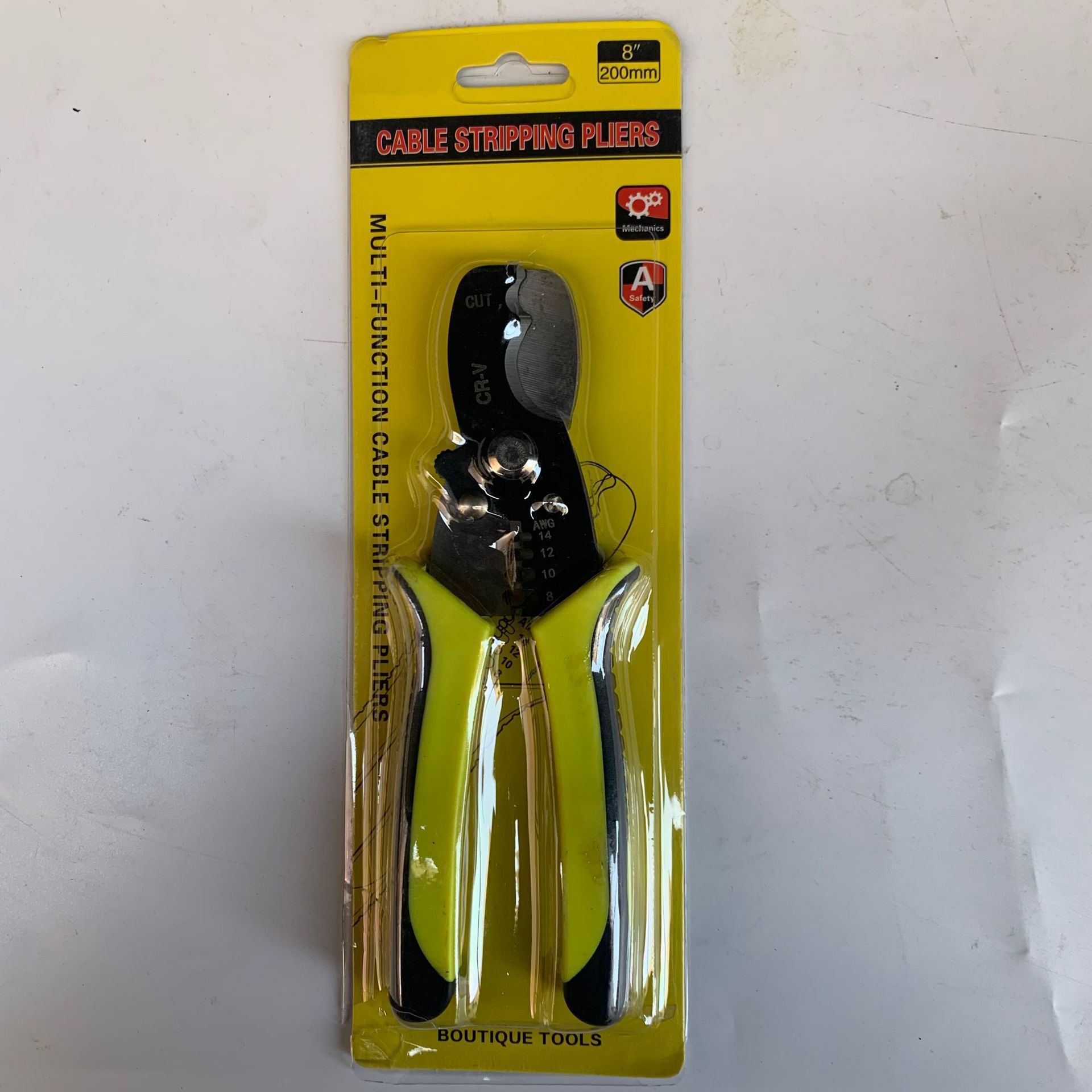 多機能ワイヤーストリッパーのケーブル電線の電気技師は、ワイヤーストリッパーを剥いて、ワイヤーストリッパーをこすります。