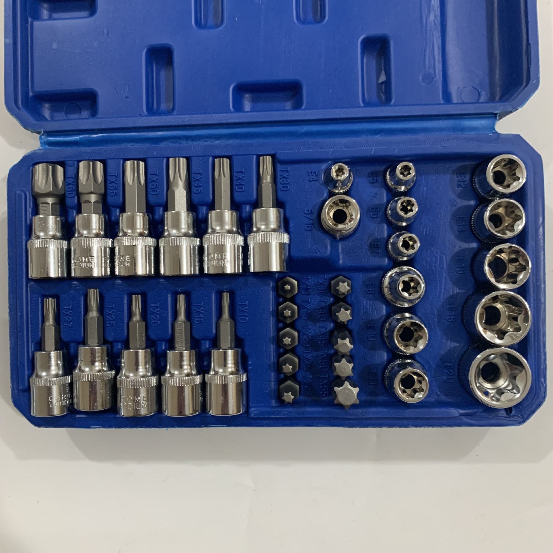 34点セット 3/8ミッドフライE型ソケット スターソケットヘッド E4-E20 六角梅花ビット T10-T60