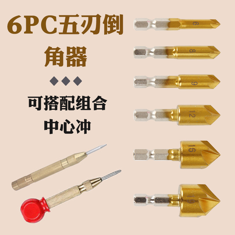 丸ハンドル六角ハンドルチタンメッキ 5 刃面取りドリル 6-19 ミリメートル 82 度ドリルビットセットハードウェアツール
