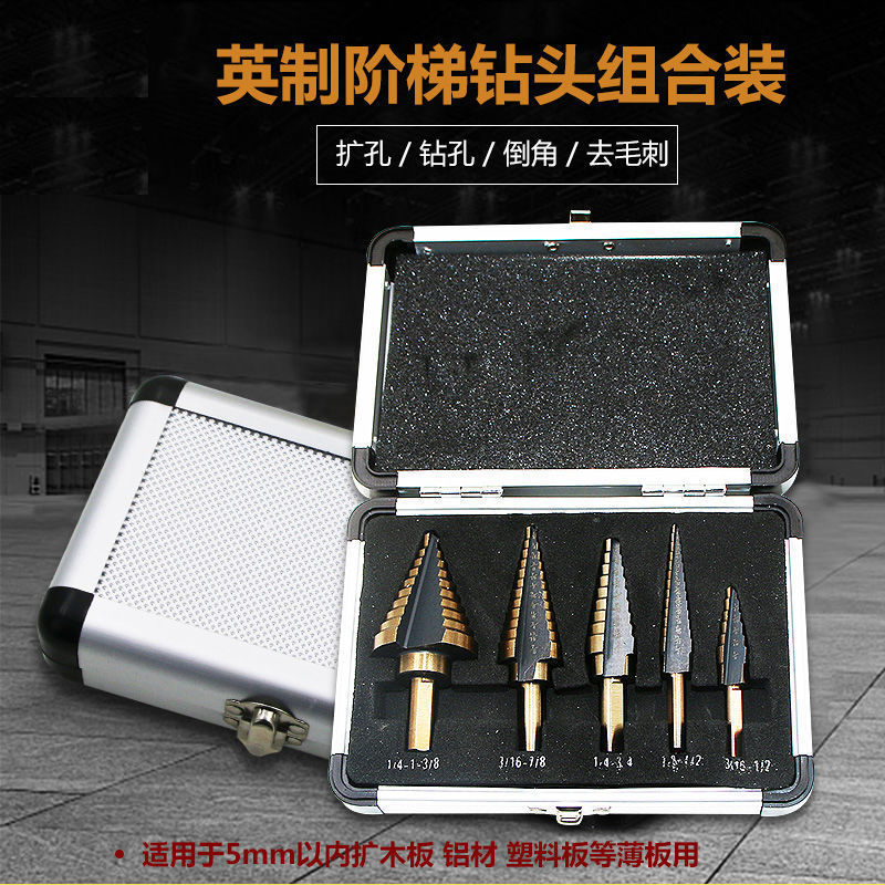 5PC5点セット三角柄英製階段ドリルアルミケース階段ドリル鋼板ドリル穴拡げドリル金物工具