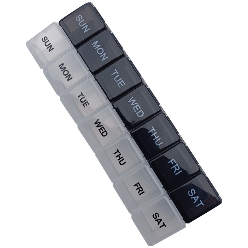 ポータブル 1 週間ピルボックス 7 コンパートメント 7 コンパートメントロングピルボックスポータブル透明ロングピルボックスサブパッケージピルボックス