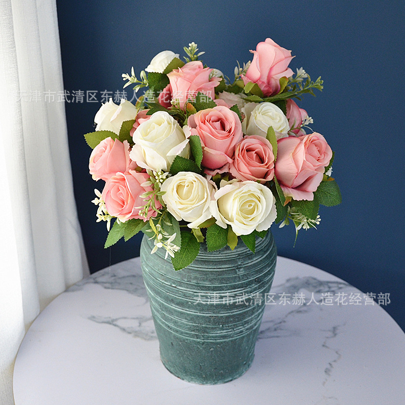 包装のpeの泡のバラのシミュレーションの花の卸売りのお茶のいくつかのテレビの棚は絹の花の結婚式を並べて花の家の装飾を挿します。
