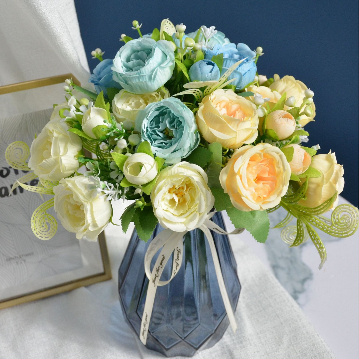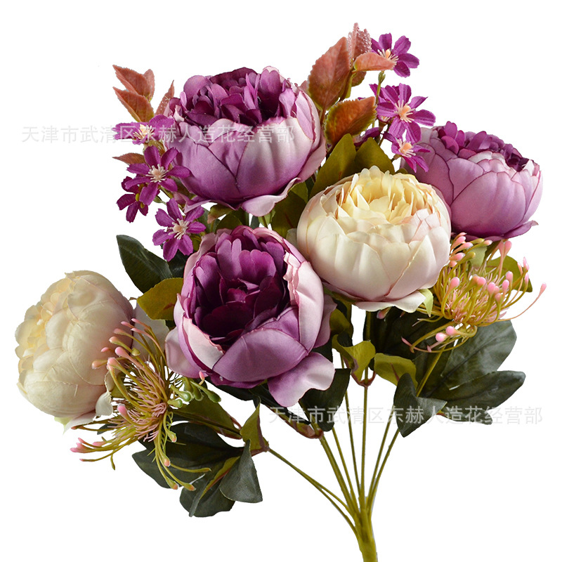 9頭のヨーロッパ式の包みの芯の牡丹の客間のレストランのバーの装飾は道具のシーンを撮影して手をすくって花の生け花を持ちます。