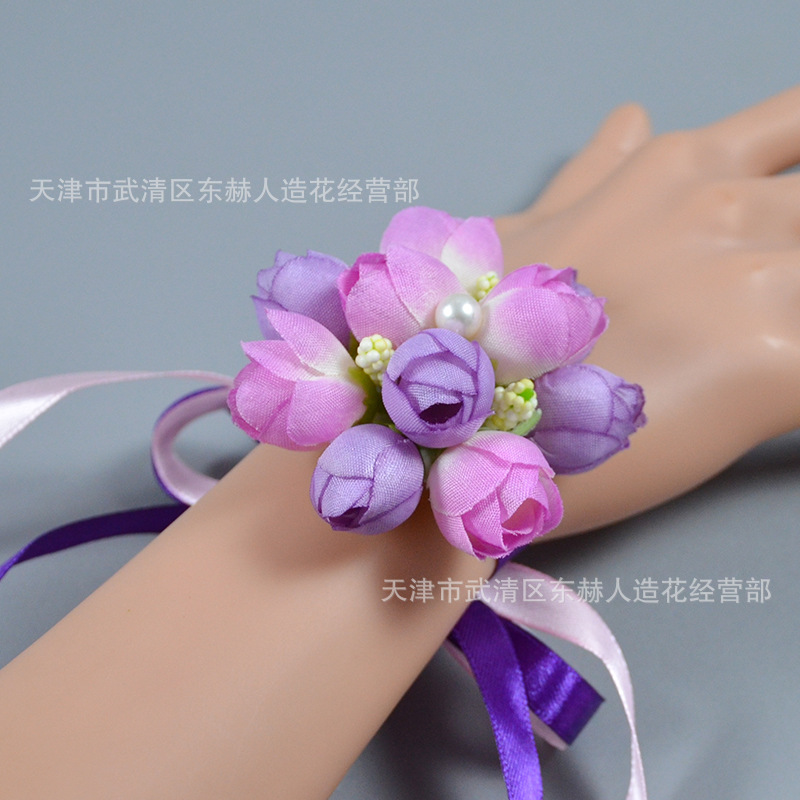 リボンの手首の花の韓国式の手環の子供の祝日のダンスの手首の花の新人の花嫁の姉妹団の手首の装飾