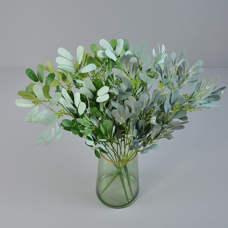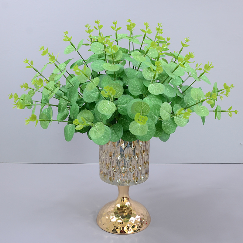7フォークユーカリの家の装飾緑の花のお茶のテーブルは花の芸の結婚式の配置の絹の花を並べます。